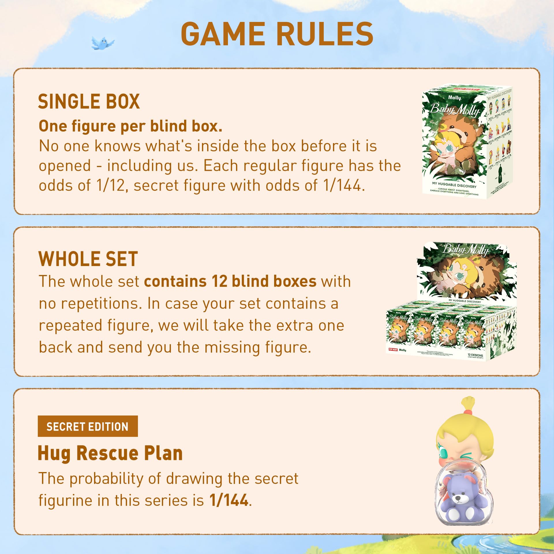 POP MART Baby Molly My Huggable Discovery Series Figures, 12PCs Blind Box Figures, Random Design Action Figures Collectible Toys Home Decorations, Holiday Birthday Gifts, Whole Set