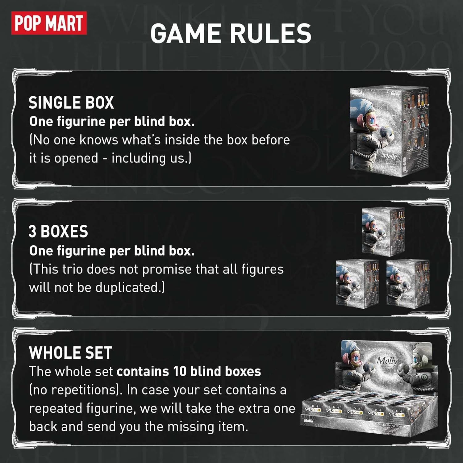 POP MART Molly Anniversary Statues Classical Retro Blind Box Figures, Random Design Toys for Modern Home Decor, Collectible Toy Set for Desk Accessories, 1PC